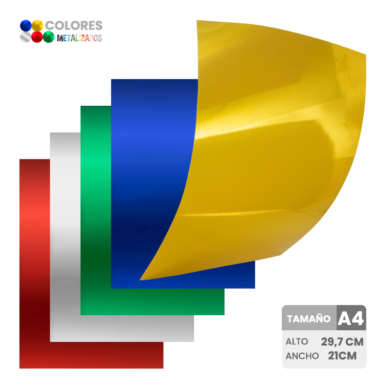 Cartulinas metalizadas de tamaño A4 perfectas para manualidades.