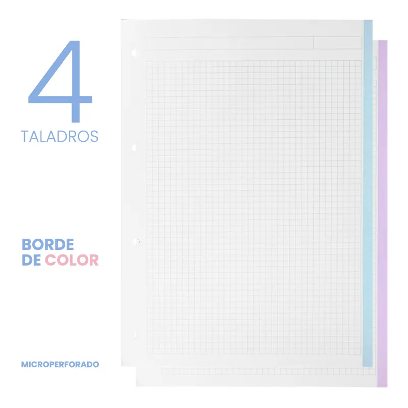 Hoja cuadriculada 5×5 mm disponible también con borde de color.