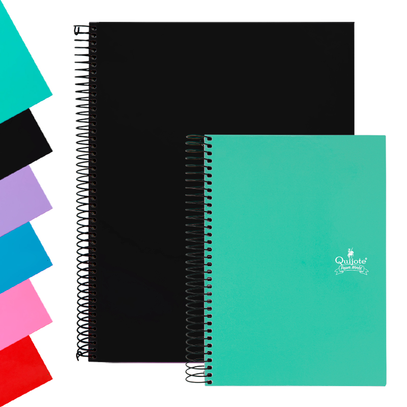 Cuaderno de tapa dura extra fuerte. Tamaño en A4 con espiral metálica.