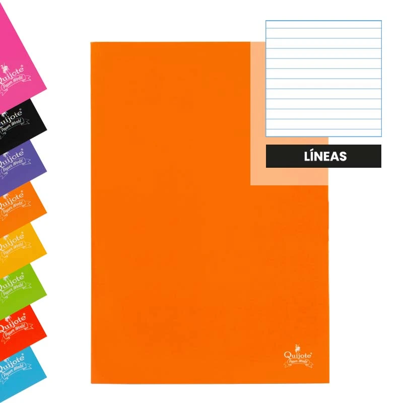 Cuaderno grapado con tapa blanda en tamaño A4.