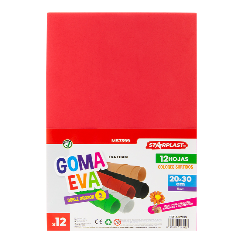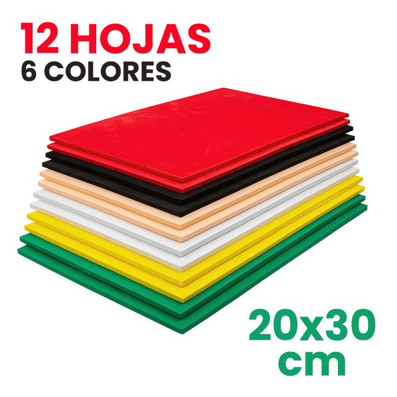 12 hojas de goma eva.
