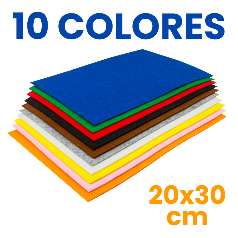 10 hojas de fieltro. Medidas 20 x 30. 10 colores.