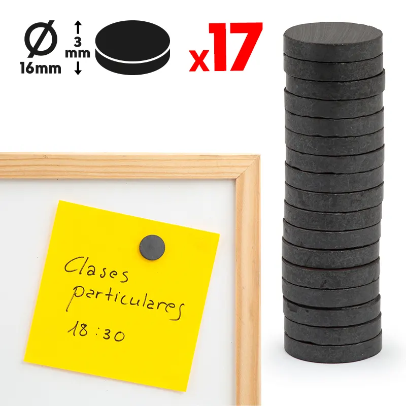 Imanes redondos 3 mm de grosor y 16 mm de diámetro. 17 unidades.