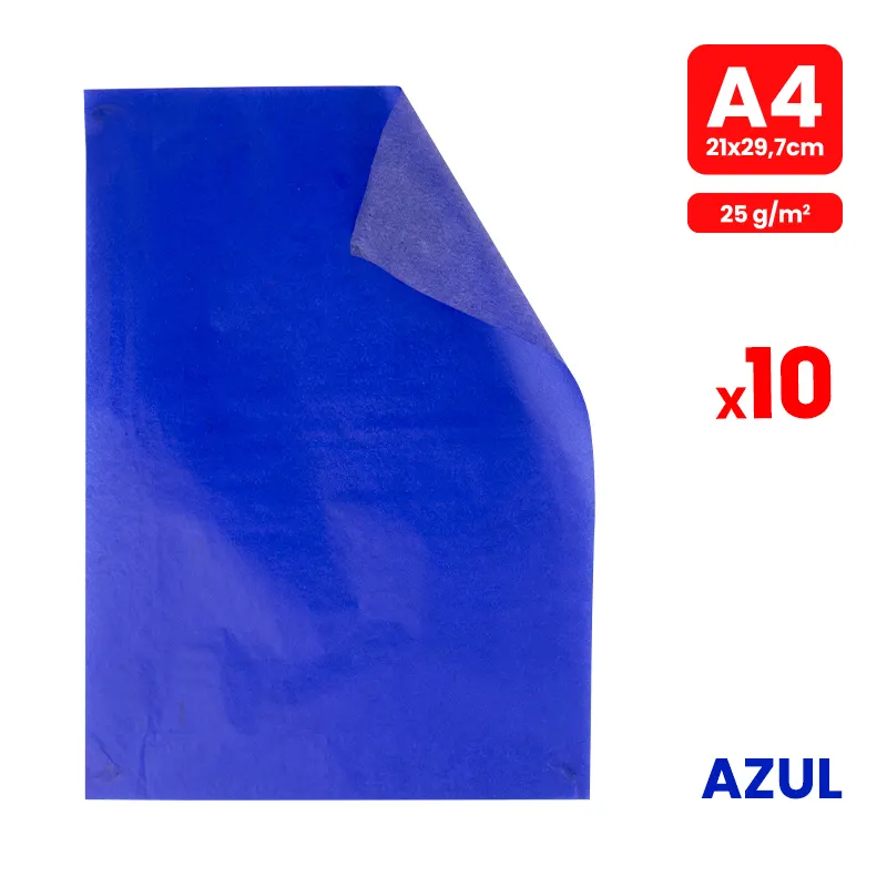 Papel calco de color azul en tamaño A4. 10 hojas.
