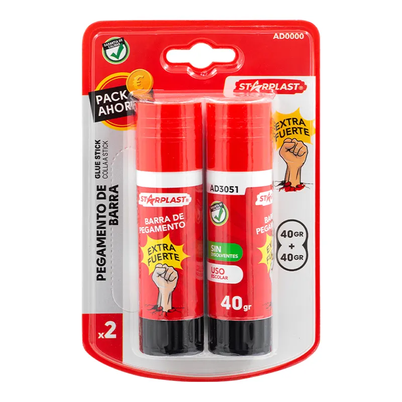 Pegamento en barra escolar. 2 unidades de 40 gr.