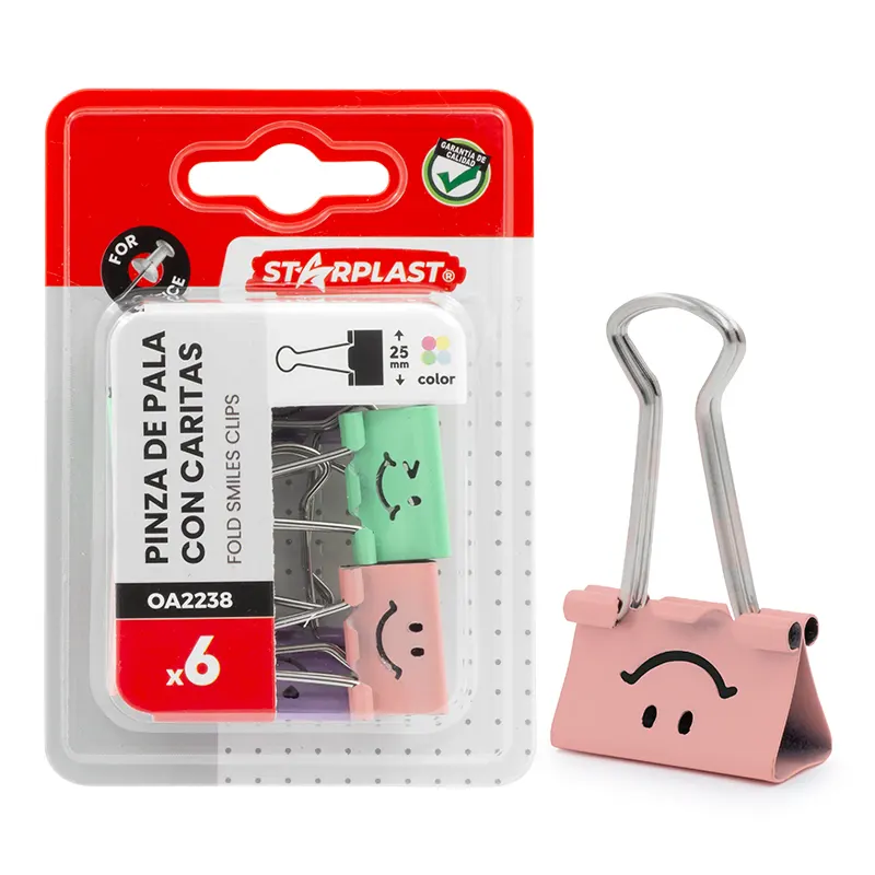 Pinzas de pala abatible de colores con diseños diferentes de caritas.