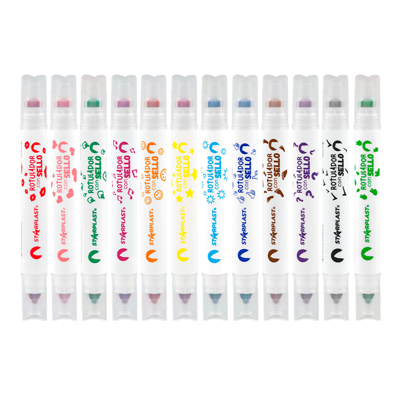 Rotuladores de doble punta con punta cónica y sello.