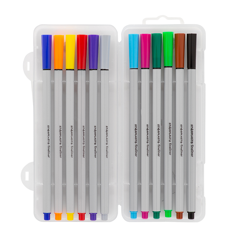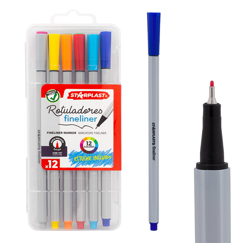 Rotuladores fineliner con 12 colores.