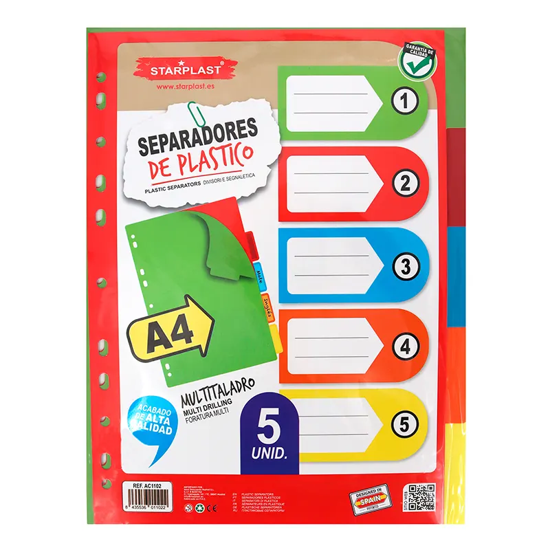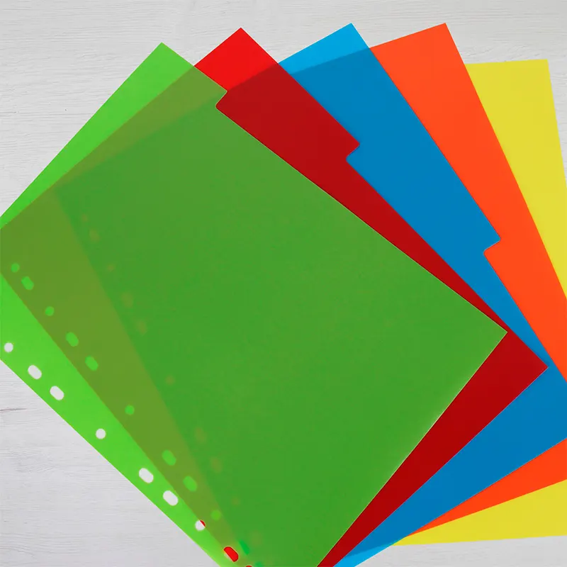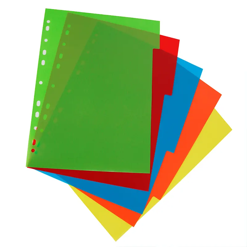 Separadores de plástico para carpetas de 2 y 4 anillas.