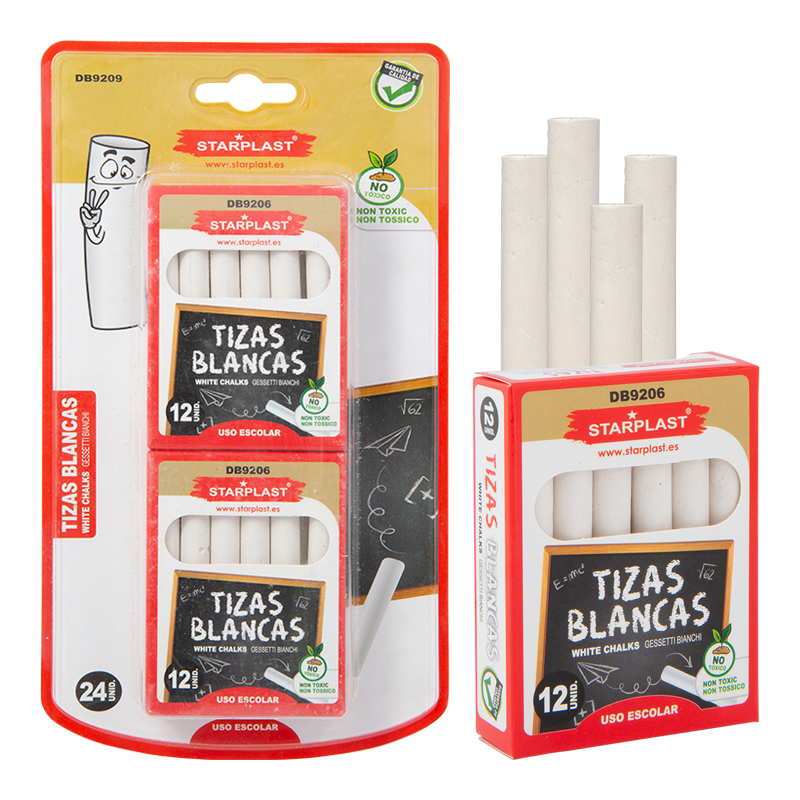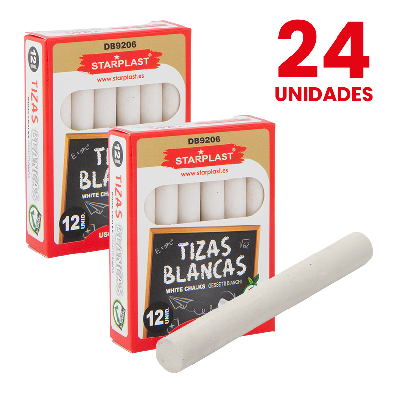 2 cajas de tizas con 24 tizas blancas en total para pizarra negra.
